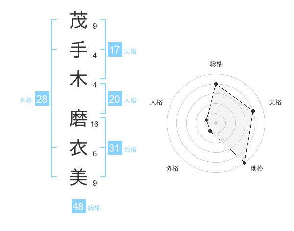 茂手木 磨衣美さんの天格は17画の4点!