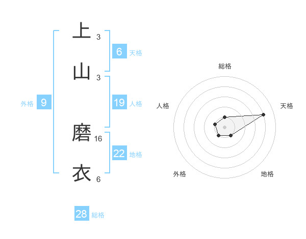 上山 磨衣さんを姓名の画数から五運を鑑定