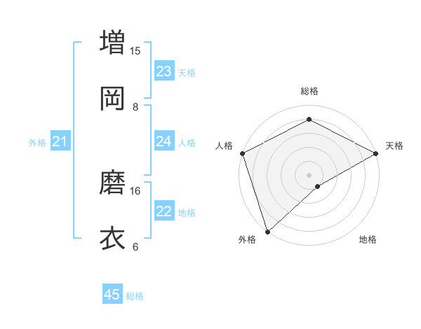 増岡 磨衣さんを姓名の画数から五運を鑑定