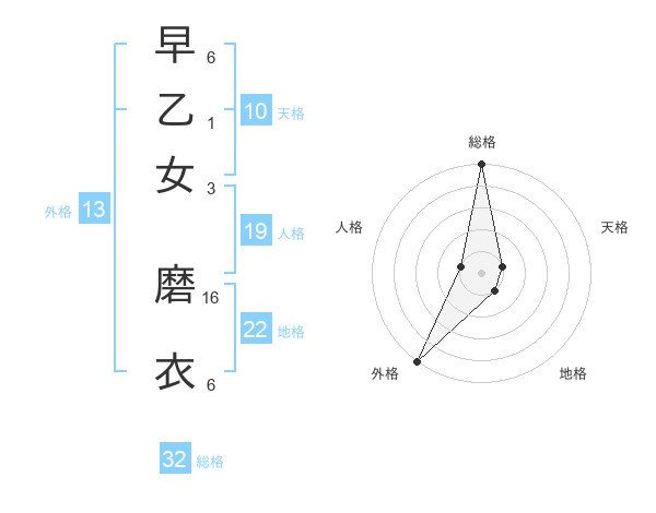 早乙女 磨衣さんの総格は32画の5点!