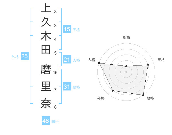 上久木田 磨里奈さんを姓名の画数から五運を鑑定