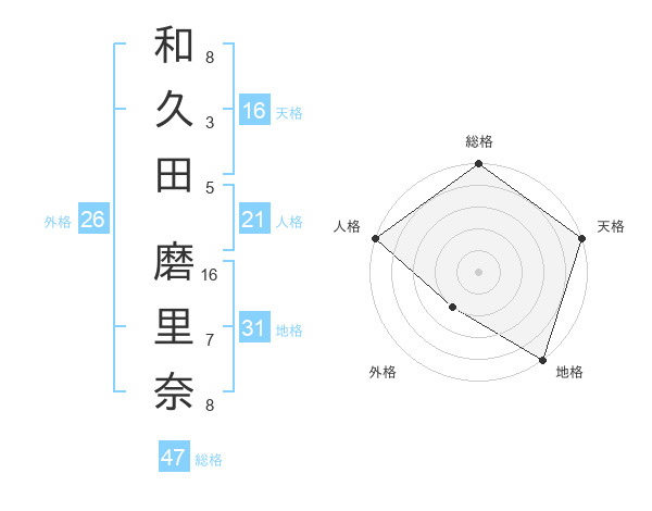 和久田 磨里奈さんを姓名の画数から五運を鑑定