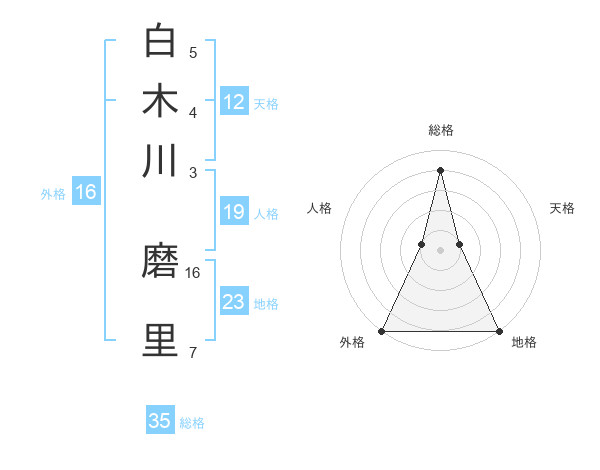 白木川 磨里さんを姓名の画数から五運を鑑定