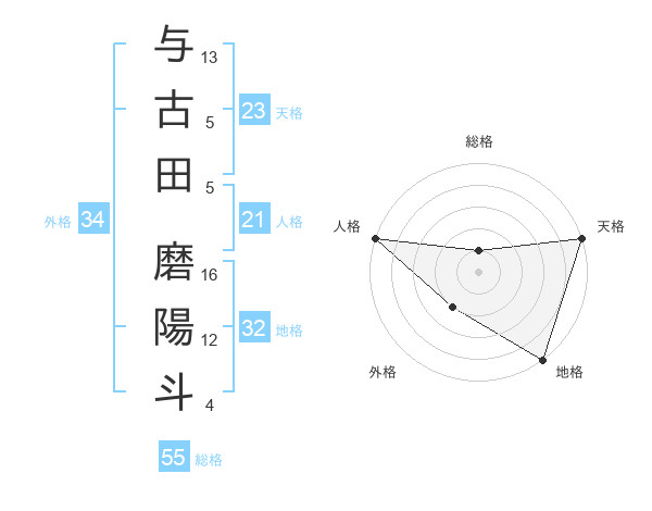 与古田 磨陽斗さんの天格は23画の5点