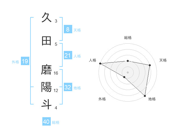 久田 磨陽斗さんの地格は32画の5点!