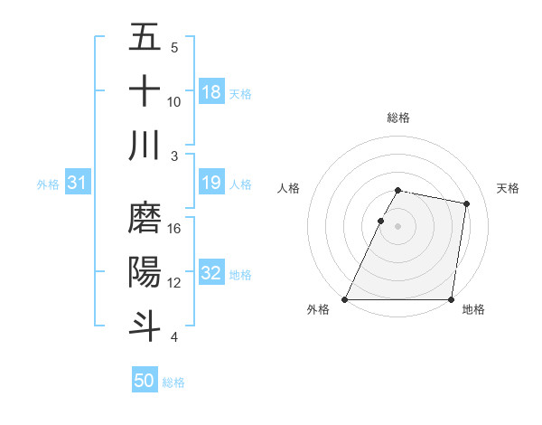 五十川 磨陽斗さんの外格は31画の5点!