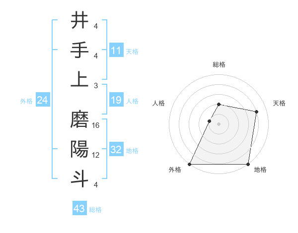 井手上 磨陽斗さんを姓名の画数から五運を鑑定