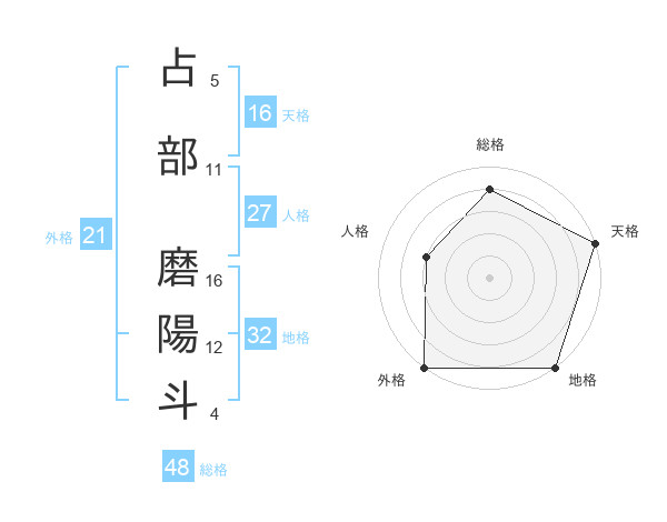 占部 磨陽斗さんを姓名の画数から五運を鑑定