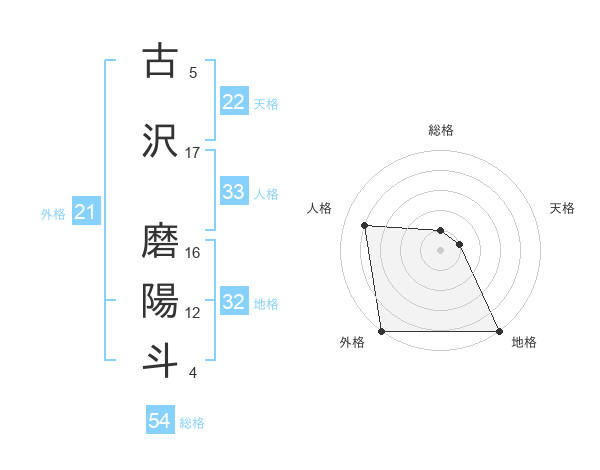 古沢 磨陽斗さんを姓名の画数から五運を鑑定