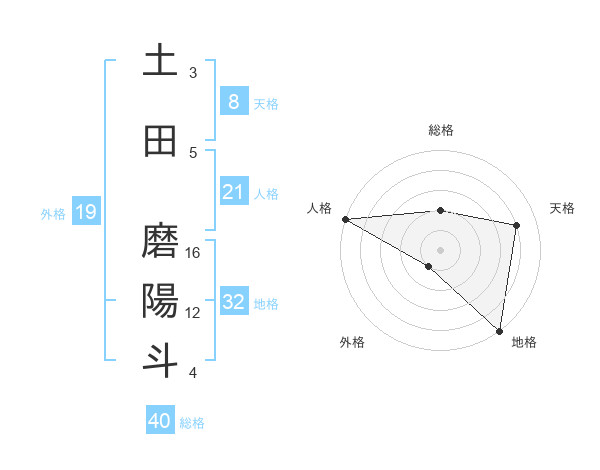 土田 磨陽斗さんを姓名の画数から五運を鑑定