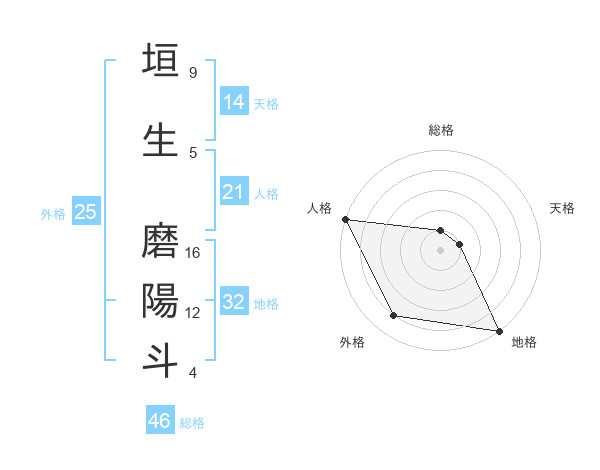 垣生 磨陽斗さんを姓名の画数から五運を鑑定