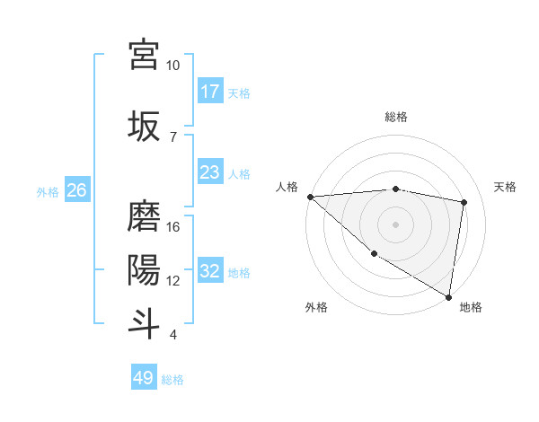 宮坂 磨陽斗さんの地格は32画の5点!