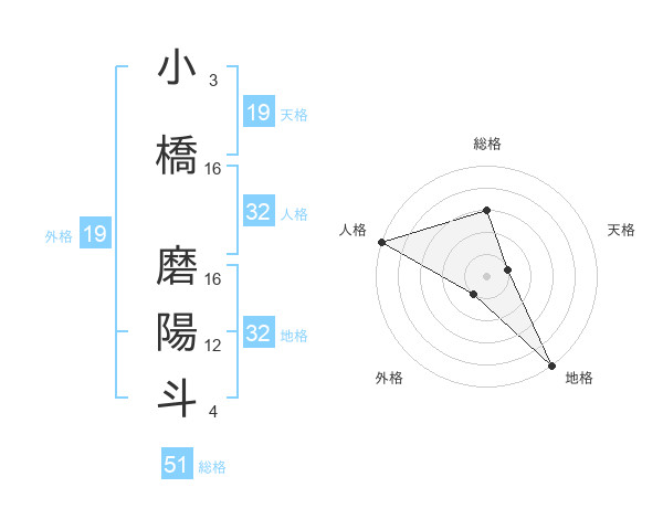 小橋 磨陽斗さんの総格は51画の3点!