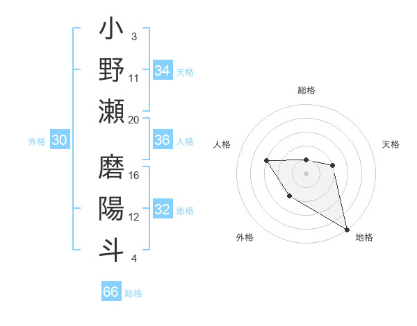小野瀬 磨陽斗さんの地格は32画の5点