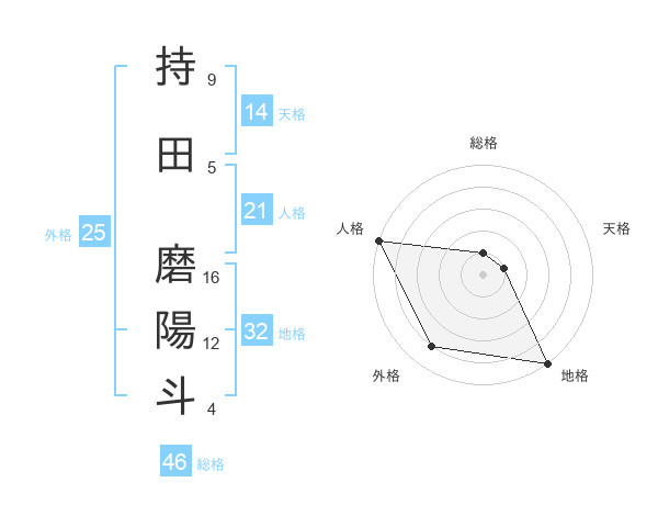 持田 磨陽斗さんの地格は32画の5点!