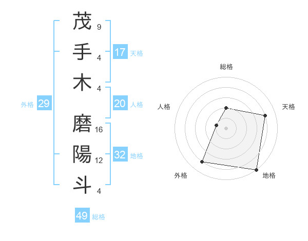 茂手木 磨陽斗さんを姓名の画数から五運を鑑定