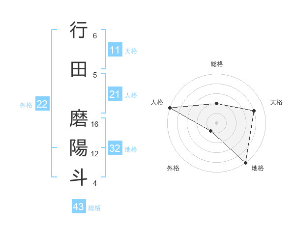 行田 磨陽斗さんを姓名の画数から五運を鑑定