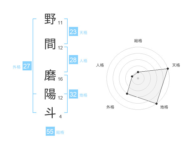 野間 磨陽斗さんを姓名の画数から五運を鑑定