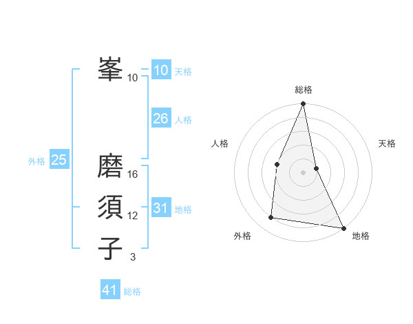 峯 磨須子さんを姓名の画数から五運を鑑定
