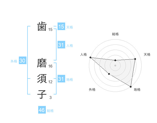 歯 磨須子さんの天格は15画の4点!