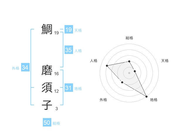 鯛 磨須子さんを姓名の画数から五運を鑑定
