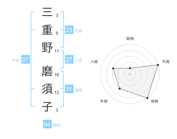 三重野 磨須子さんを姓名の画数から五運を鑑定