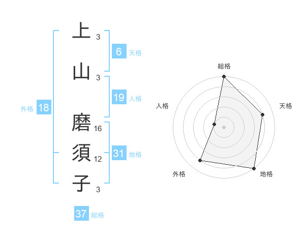 上山 磨須子さんの総格は37画の5点!