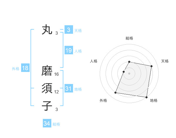 丸 磨須子さんを姓名の画数から五運を鑑定