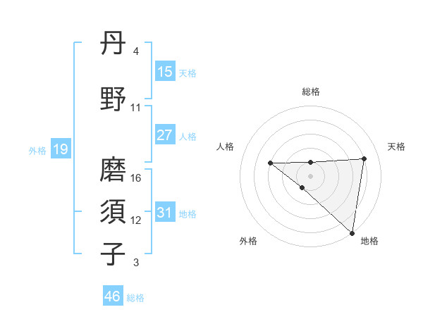 丹野 磨須子さんを姓名の画数から五運を鑑定