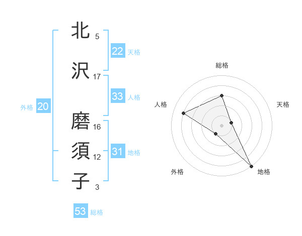 北沢 磨須子さんを姓名の画数から五運を鑑定