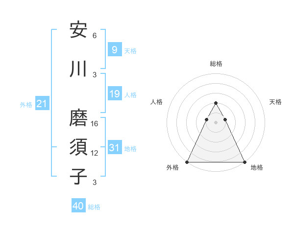 安川 磨須子さんを姓名の画数から五運を鑑定