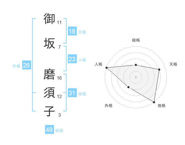 御坂 磨須子さんを姓名の画数から五運を鑑定