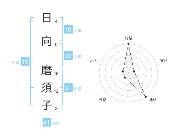 日向 磨須子さんの総格は41画の5点!