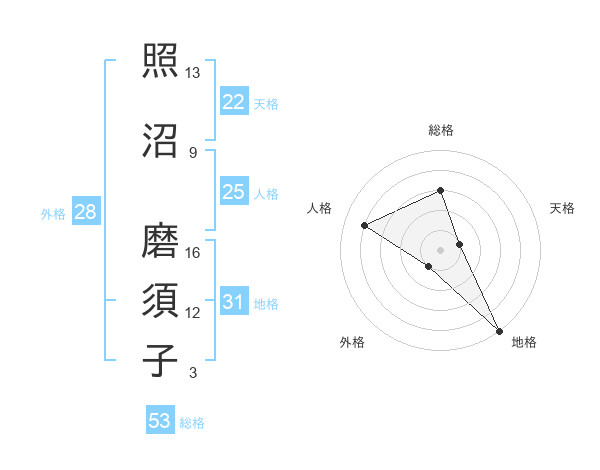 照沼 磨須子さんの天格は22画の1点!
