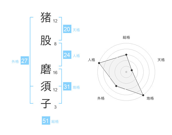 猪股 磨須子さんの総格は51画の3点!