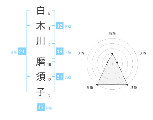 白木川 磨須子さんを姓名の画数から五運を鑑定