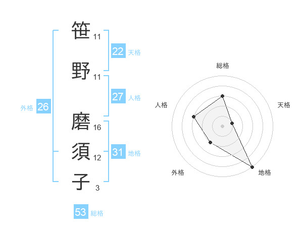 笹野 磨須子さんを姓名の画数から五運を鑑定
