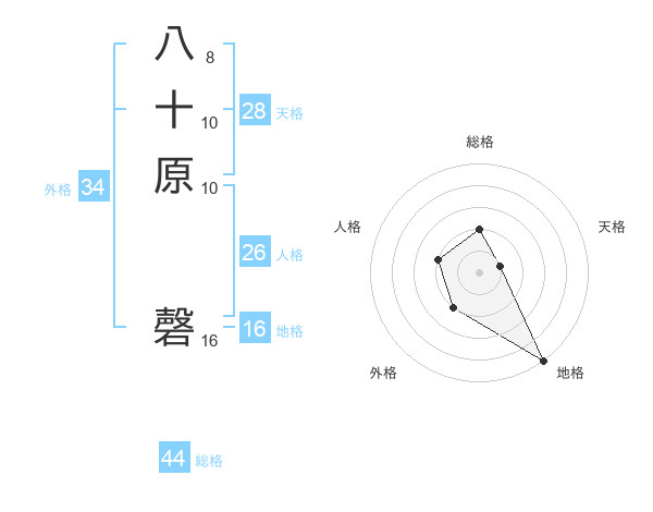 八十原 磬さんの総格は44画の2点!