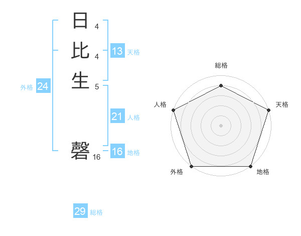 日比生 磬さんの総格は29画の4点!