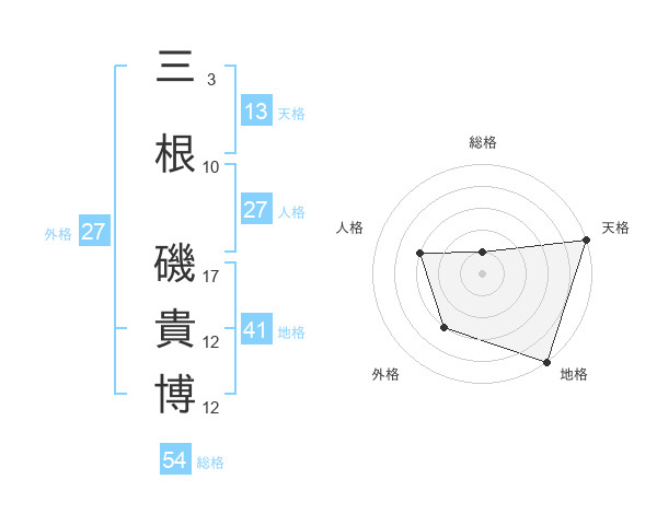 三根 磯貴博さんを姓名の画数から五運を鑑定