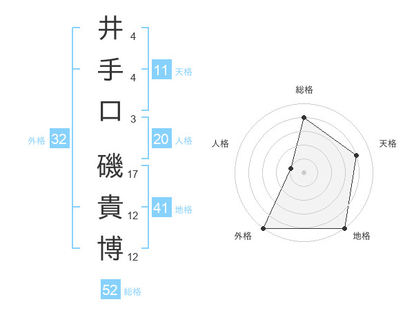 井手口 磯貴博さんの総格は52画の4点!