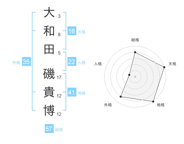 大和田 磯貴博さんを姓名の画数から五運を鑑定