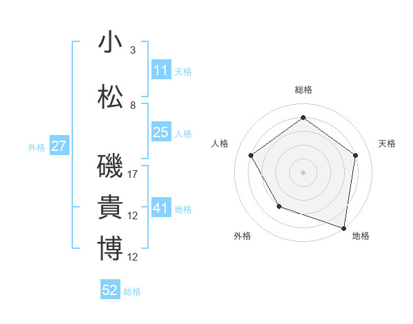 小松 磯貴博さんを姓名の画数から五運を鑑定