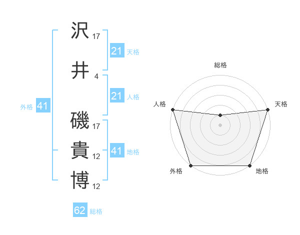 沢井 磯貴博さんを姓名の画数から五運を鑑定