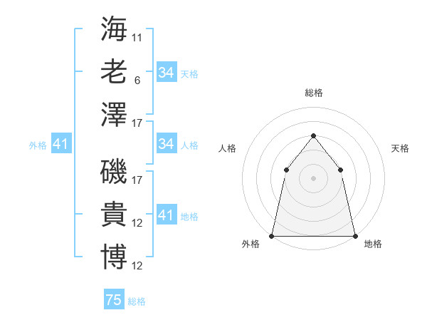 海老澤 磯貴博さんの総格は75画の3点!
