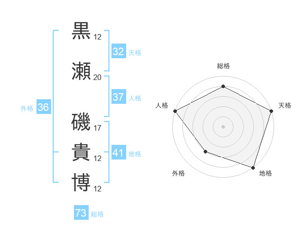 黒瀬 磯貴博さんの総格は73画の4点!