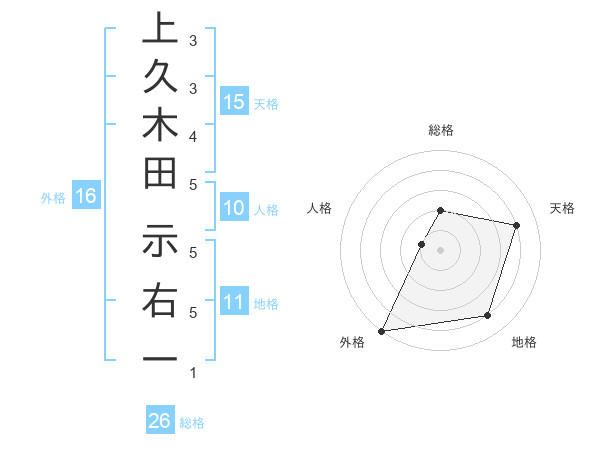 上久木田 示右一さんを姓名の画数から五運を鑑定