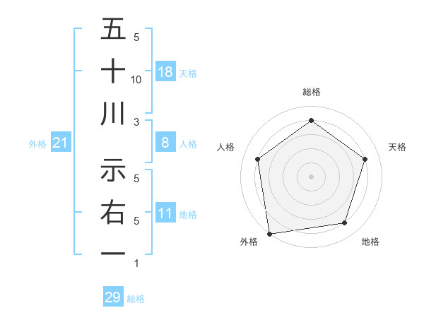 五十川 示右一さんを姓名の画数から五運を鑑定