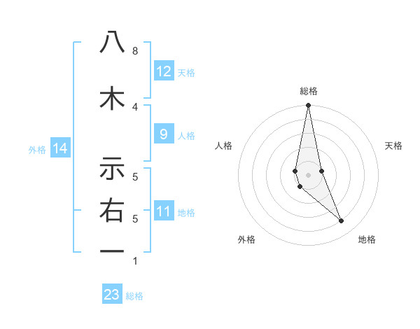 八木 示右一さんの総格は23画の5点!