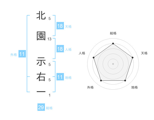 北園 示右一さんの総格は29画の4点!